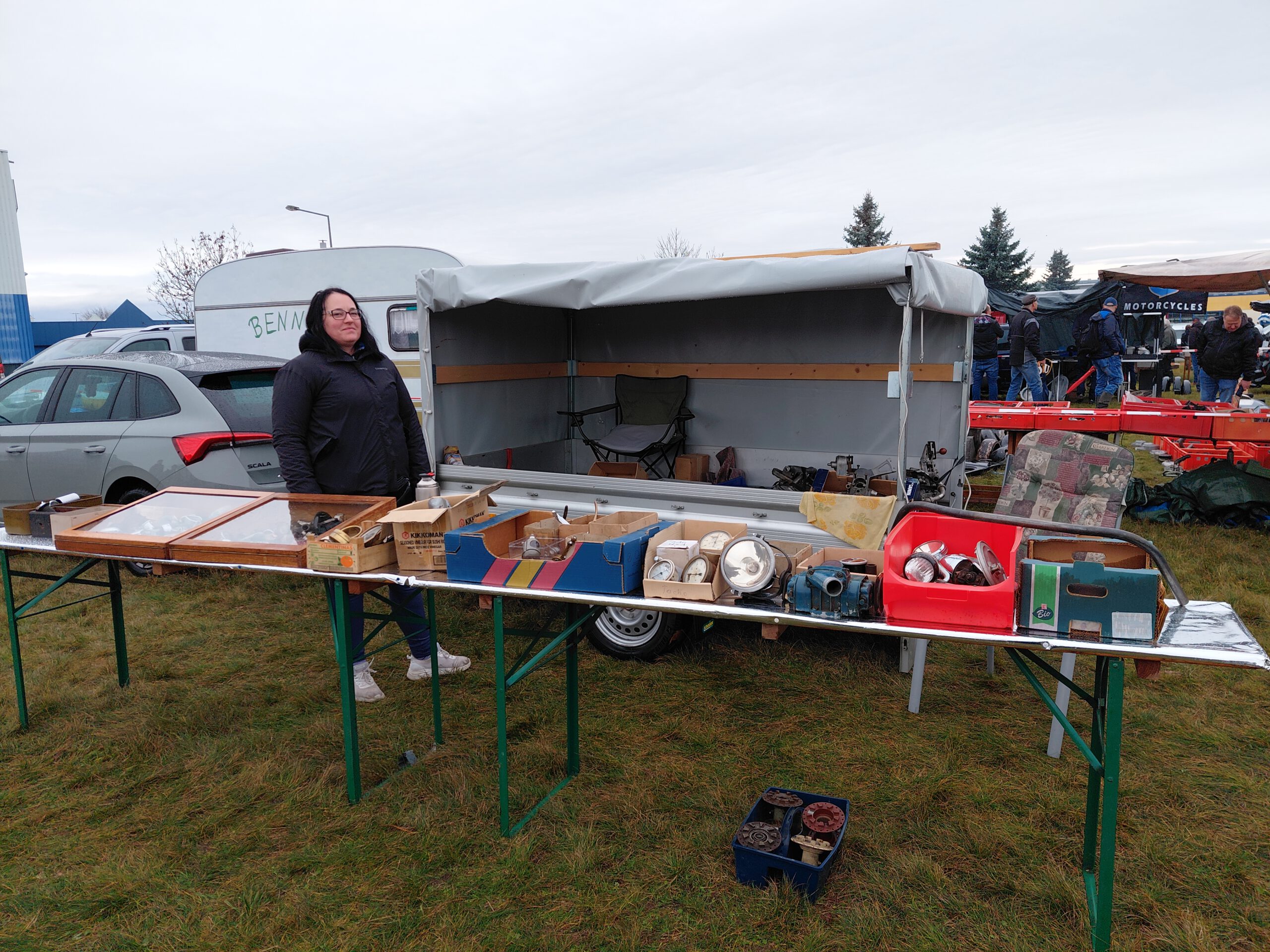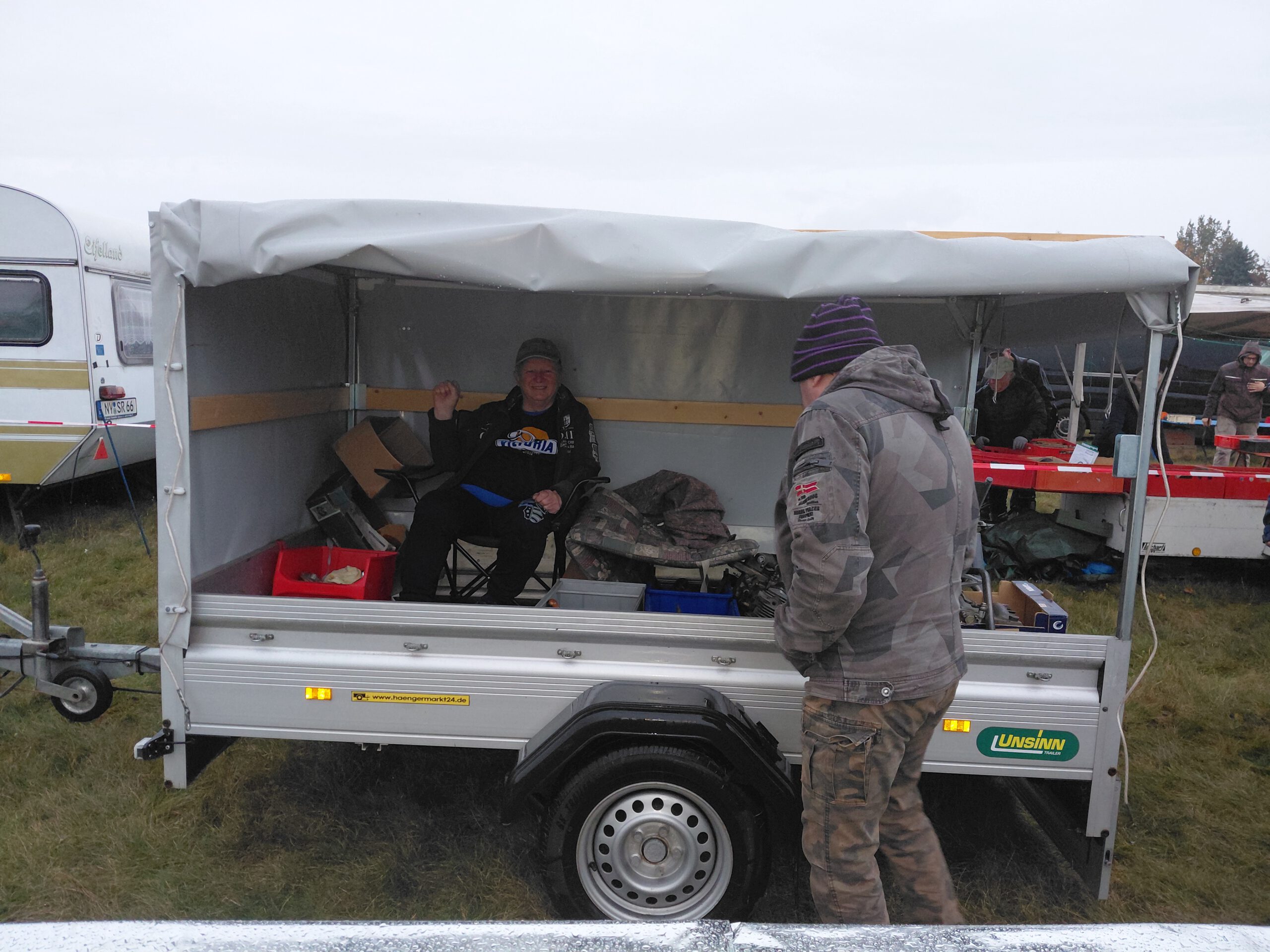 Früh am Morgen – Verkauf aus dem Anhänger, da es noch regnete…