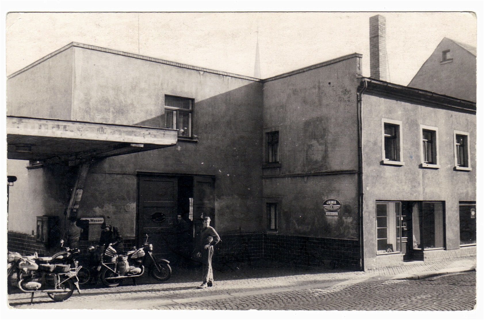 Der Besitzer Willy Strobel gründete in Co. eine Werkstatt mit anschließender Tankstelle im Vertrag mit „SHELL“. Am Anfang hat der Willy die im Reichenbacher Raum bekannten „Elster-Motorräder“ repariert, das war von 1924 – 1927. Ab dem Jahr 1929 hatte Willy Strobel die deutsche „Triumpf-Motorrad-Vertretung“.
