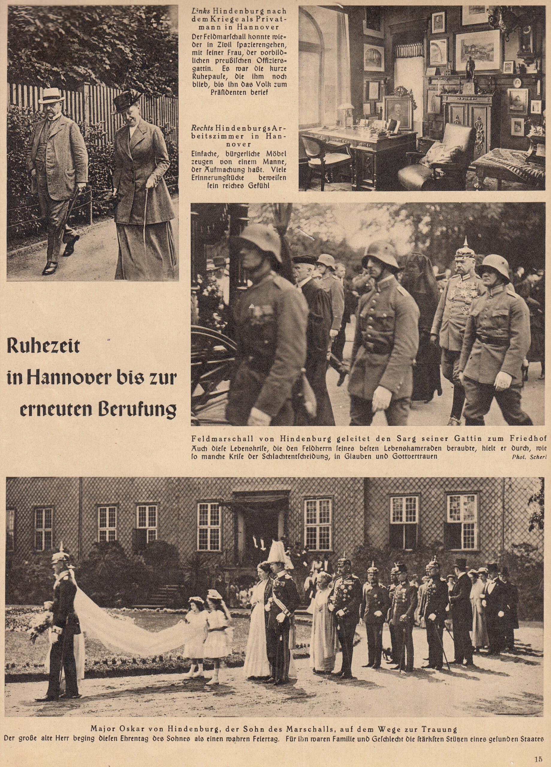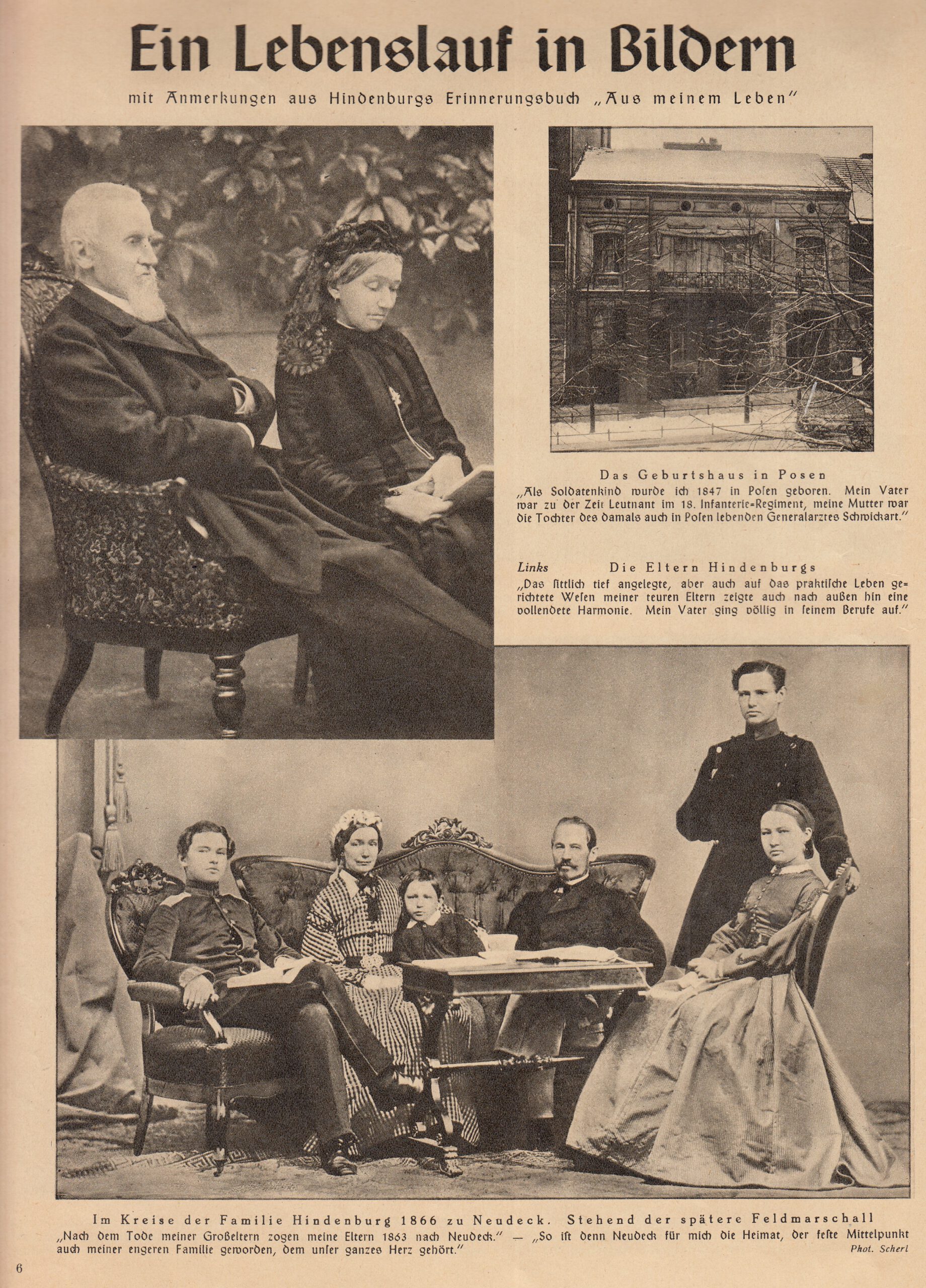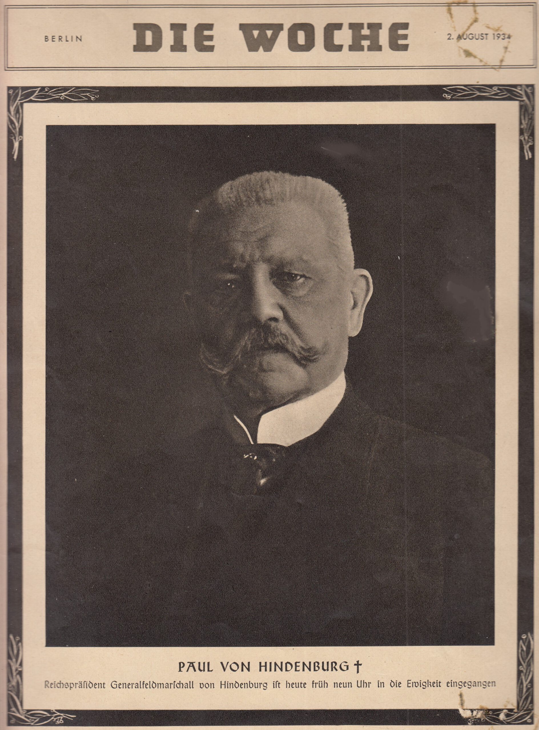 Die Historie – des „Reichspräsident Generalmarschall Paul von Hindenburg“ – wurde 1847 in Posen geboren und starb 2.August 1934…