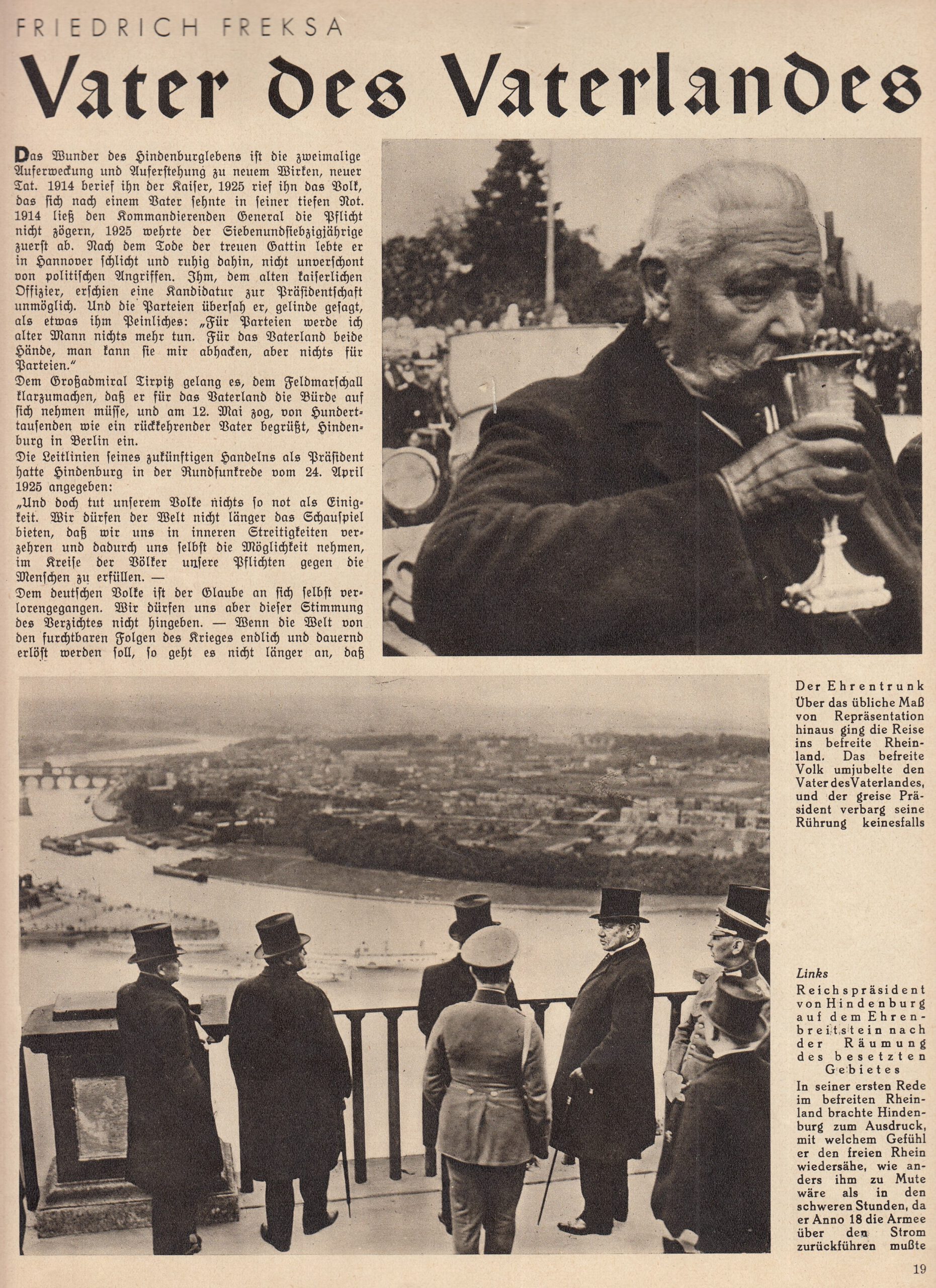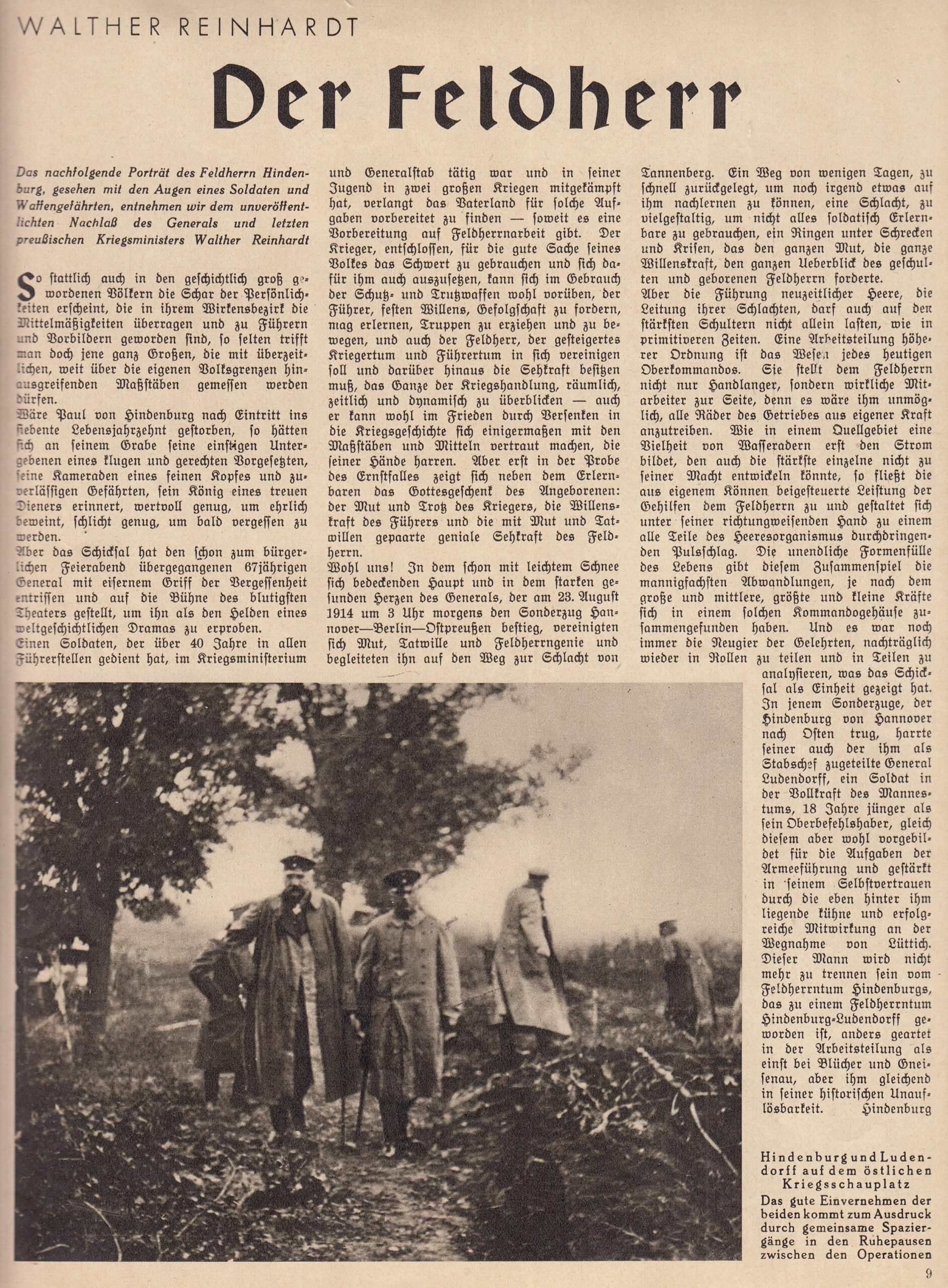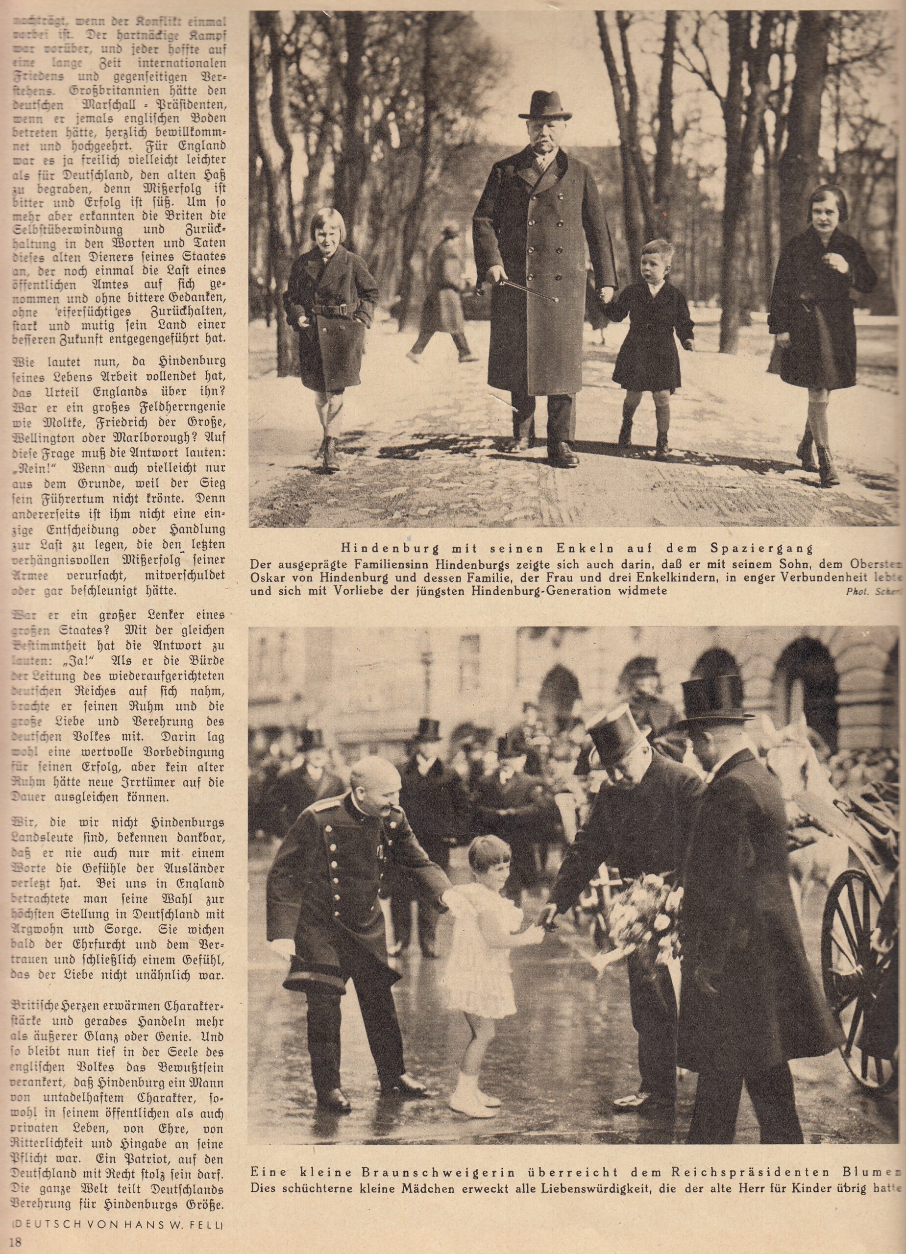 Die Historie – des „Reichspräsident Generalmarschall Paul von Hindenburg“ – wurde 1847 in Posen geboren und starb 2.August 1934…